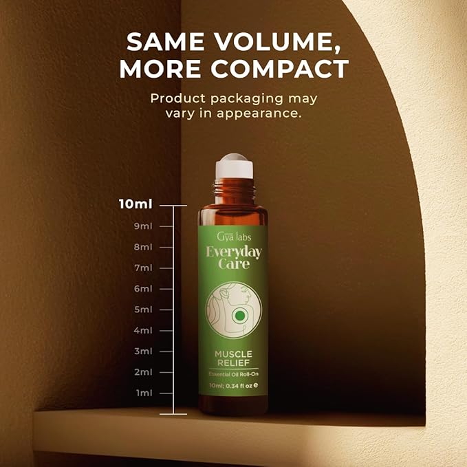 Gya Labs Muscle Relief Essential Oil Roll On - 0.34 Fl Oz - Travel Size Roller for Camping, Skin, Aromatherapy Relief, Convenience