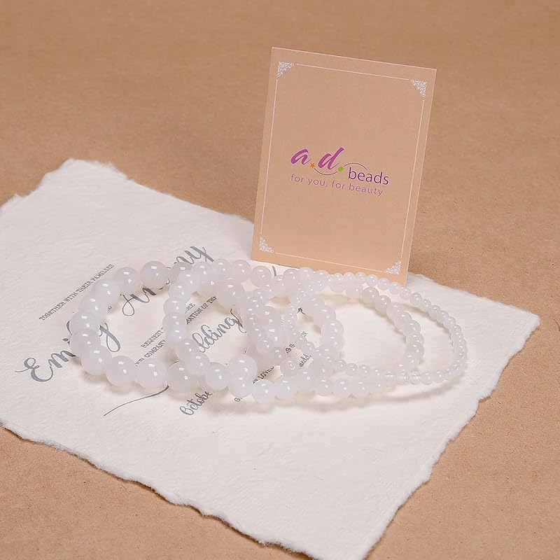 AD Beads Handmade Gemstone Stretch Elastic Bracelet Crystal Healing Reiki Nature's Beauty and Spiritual Essence Unisex (8mm, White Jade (Decision Making))