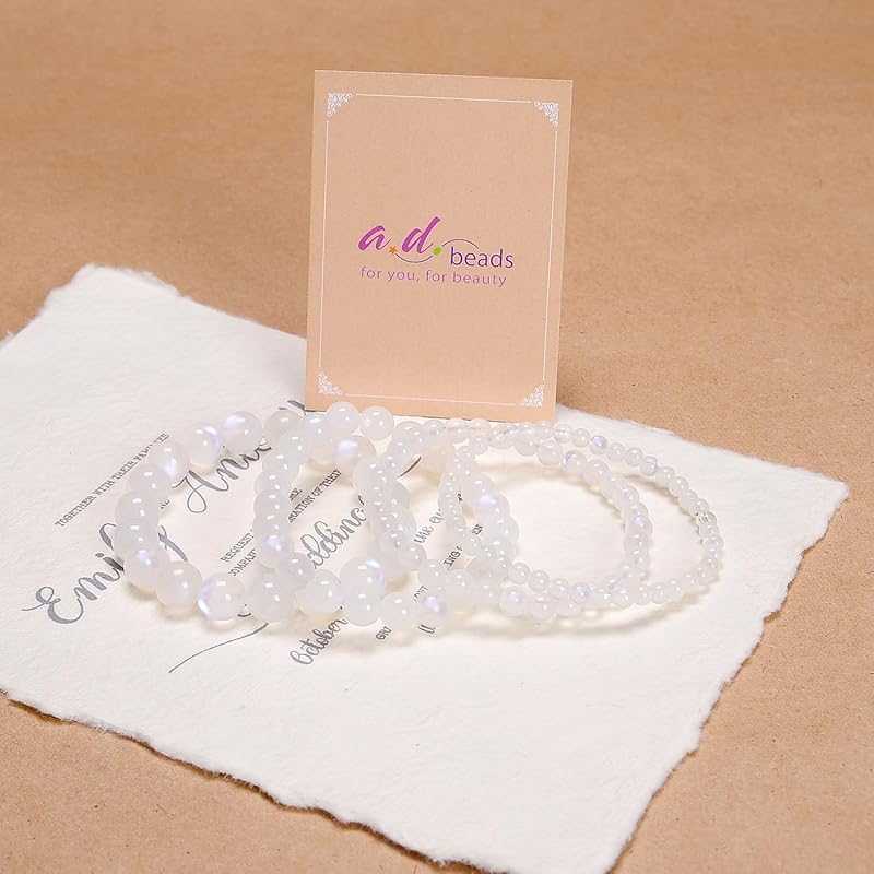 AD Beads Handmade Gemstone Stretch Elastic Bracelet Crystal Healing Reiki Nature's Beauty and Spiritual Essence Unisex (6mm, Moonstone (love and friendship))