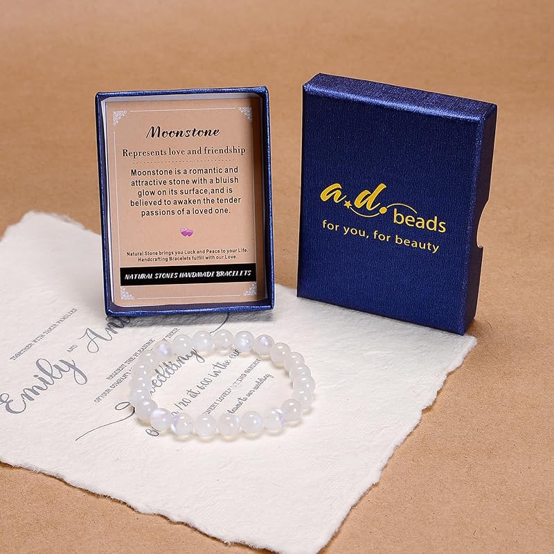AD Beads Handmade Gemstone Stretch Elastic Bracelet Crystal Healing Reiki Nature's Beauty and Spiritual Essence Unisex (10mm, Moonstone (love and friendship))