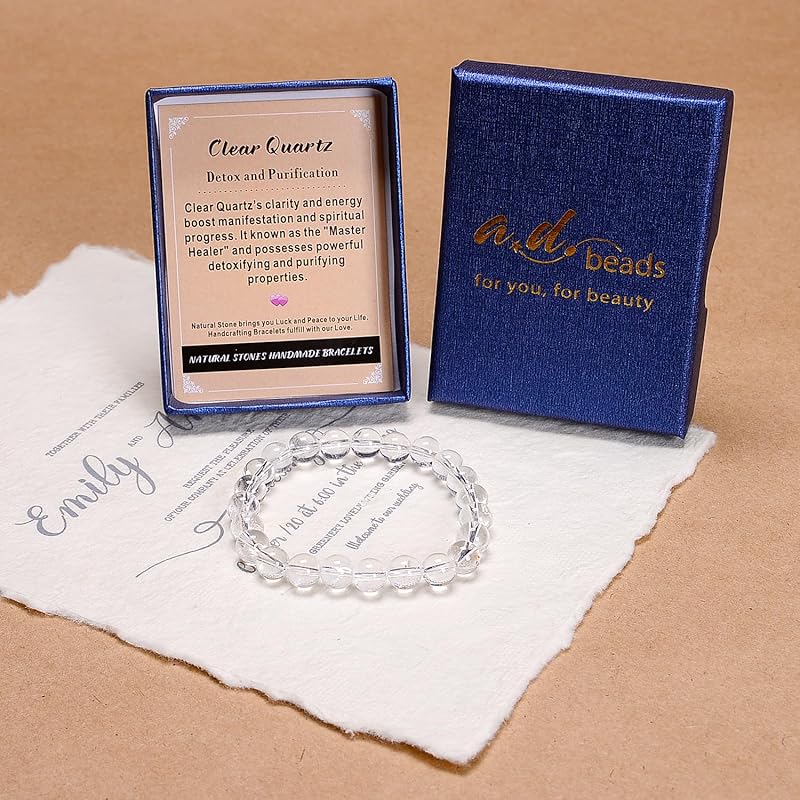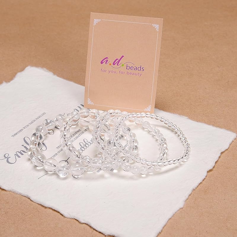 AD Beads Handmade Gemstone Stretch Elastic Bracelet Crystal Healing Reiki Nature's Beauty and Spiritual Essence Unisex (8mm, Clear Quartz (Detox and Purification))