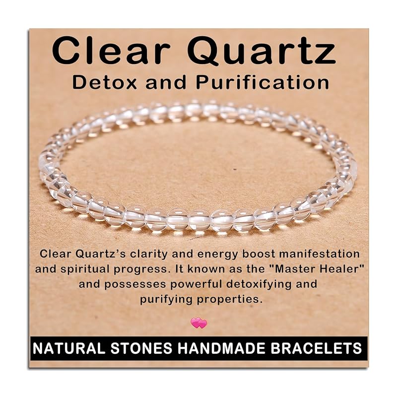 AD Beads Handmade Gemstone Stretch Elastic Bracelet Crystal Healing Reiki Nature's Beauty and Spiritual Essence Unisex (4mm, Clear Quartz (Detox and Purification))