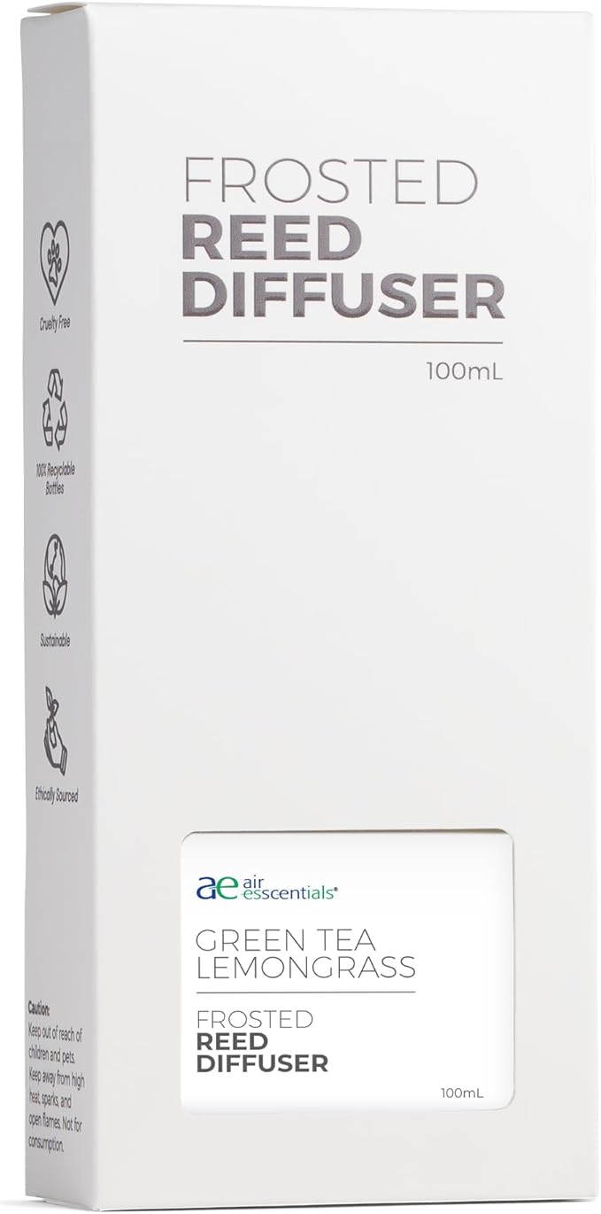 Air Esscentials Frosted Green Tea Lemongrass Reed Diffuser Set - Decorative Fragrance Diffuser & Oil for Bathroom & Home | Long-Lasting Aroma | Natural Scent Sticks | Essential Oils, Botanicals| 100mL