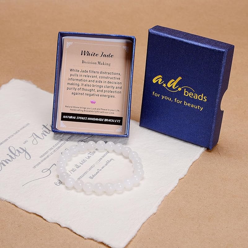 AD Beads Handmade Gemstone Stretch Elastic Bracelet Crystal Healing Reiki Nature's Beauty and Spiritual Essence Unisex (6mm, White Jade (Decision Making))