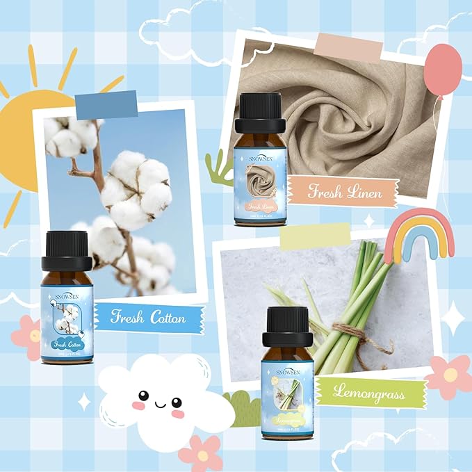 Clean Essential Oils Set, SNOWSEN Fragrance Oil for Diffuser, Wool Dryer Balls, Candle, Soap Making, Fresh Cotton, Fresh Linen, Lemongrass, Soft Powder, Lavender Laundry, Blossom Soap Scented Oil