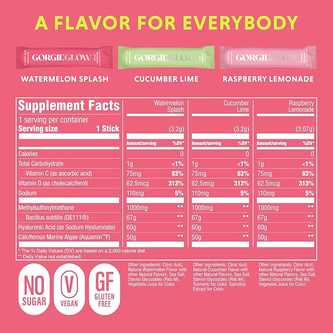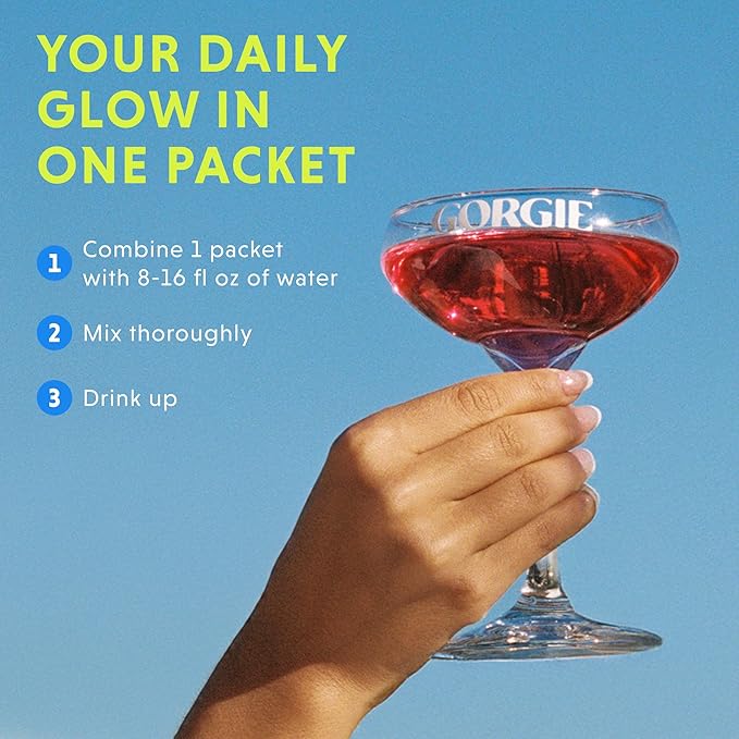 GORGIE Glow Variety Pack 15 Sticks, Electrolyte Powder Healthy Drink Mix, w/Hyaluronic Acid, Aquamin, Vitamin C & D, Probiotics, No Sugar, Antioxidants for Hydration, Skin Care, and Gut Balance