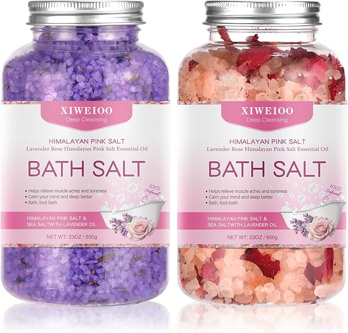 - 💕xiweioo bath salts are made of high quality Himalayan foot bath salts + rose petals + lavender petals + rose lavender essential oil.