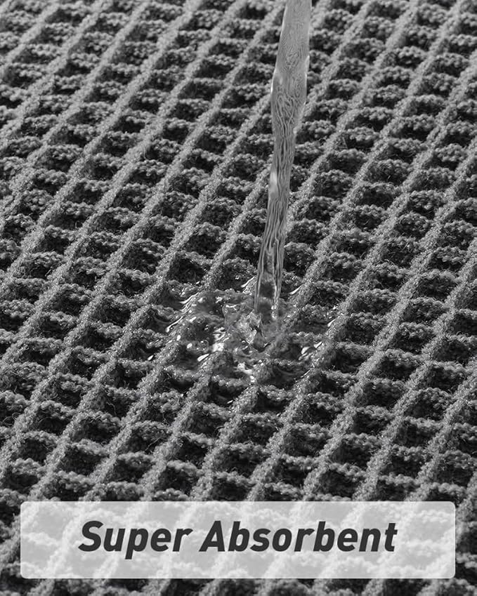 - Great Water Absorption: Double layer of deep waffle texture absorbs water instantly and more breathable. In addition, the yarns we use is inherently absorbent-it absorb water like crazy. This absorbent bath mat can soak up the water and keep your floor dry like a giant sponge, and protect your feet from the cold floor.