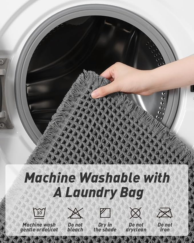- Easy to Maintain: Machine washable bathroom rugs provide convenience in your daily life. Recommend gentle mode,cold water. Or just shake the dust off from the bath rugs for simple cleaning.