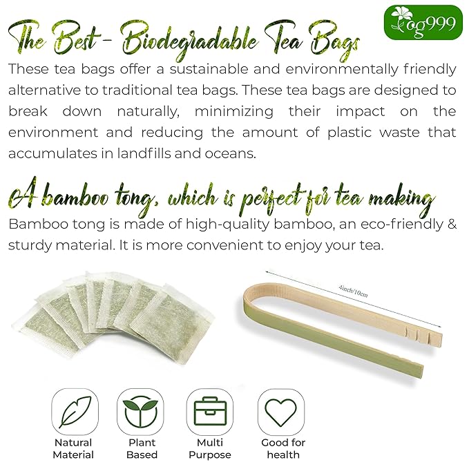 - ☘️ BIODEGRADABLE TEA BAG - NATURAL MATERIAL: The tea bags are made of natural corn fiber, which is friendly and nice for the environment. No Strings. No Wrapped. No Staples. No Adhesive. No Bleach. No Dyes - 100% Safety.