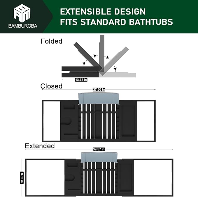 - FITS STANDARD BATHTUB: Our bathtub caddy was specifically designed to expand from 27.5 inches to 40 inches, fits all standard roman bathtub,you just need to manually adjust it to the right length and don't need any tools.