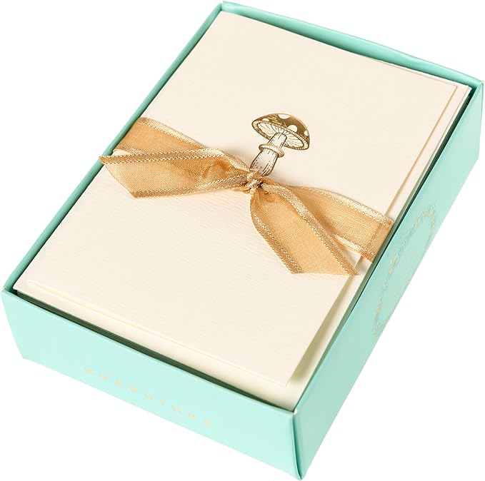 Graphique Mushroom Cards, Pack of 10 Cards with Envelopes, All Occasion Greetings, Blank Inside, Gold Foil Embossing, La Petite Press Collection Boxed Set, 3.25" x 4.75"
