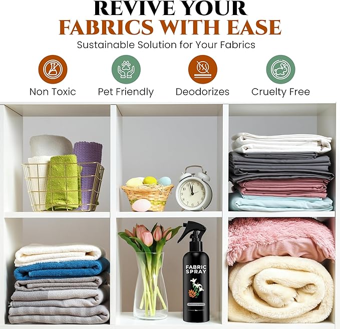 - MADE WITH ESSENTIAL OILS: Our Fabric Refresher Spray is more than just any other Frabric Spray for linens. It is a unique blend of essential oils that help you relax and clear your head.