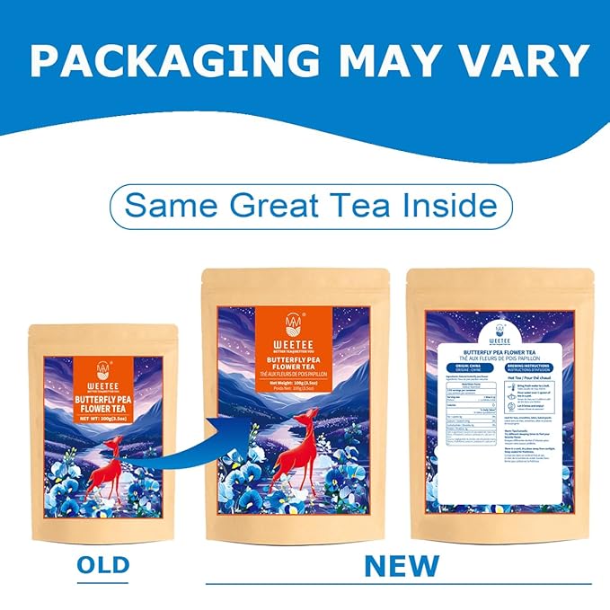 WT WEETEE Butterfly Pea Flower Tea Loose Leaf, 100% Natural & Pure from Whole Dried Butterfly Pea Flowers, Caffeine Free Herbal Tea For Blue & Purple Drinks