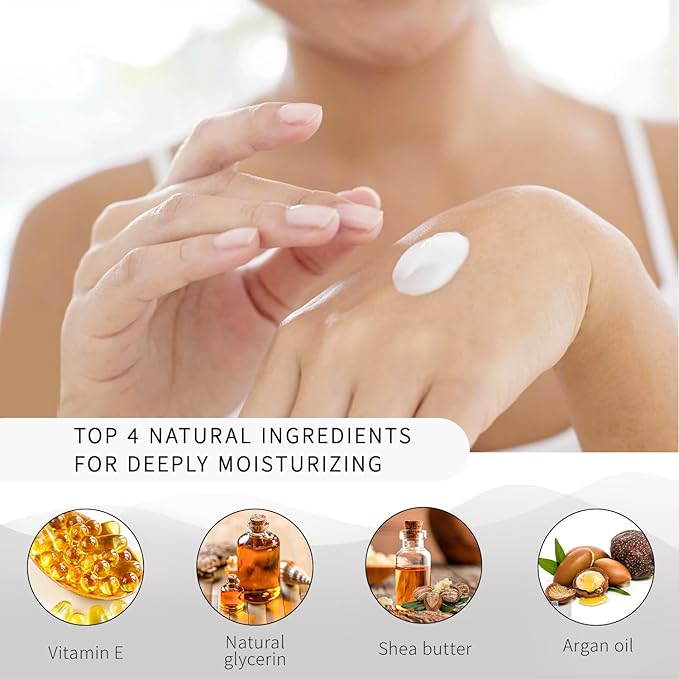 - Organic And Natural Ingredients: Enriched with Shea butter, argan oil, natural glycerin, vitamins, minerals and so much more. These formulas soften the outer layers of the skin and penetrate to the deep inner levels. Non-greasy, only moisturizing