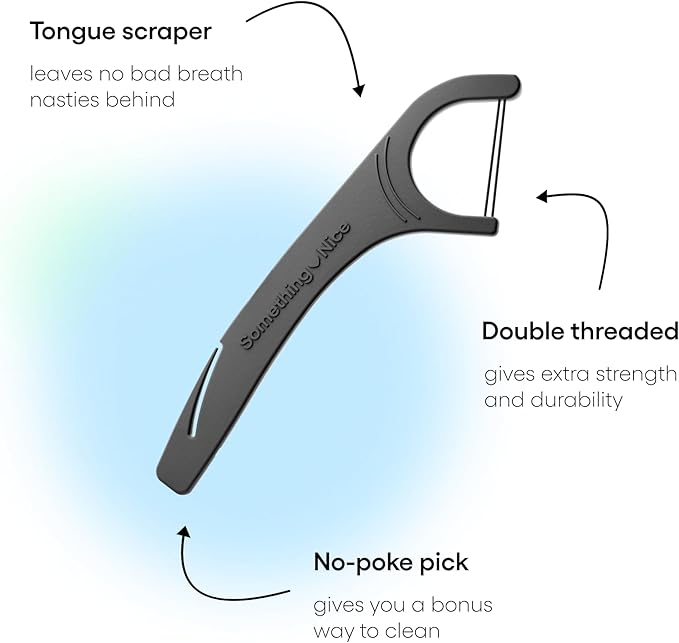 SOMETHING NICE Versa Floss Picks - Minty Fresh Twin Floss for Extra Strength with Mint Flavour - Dental Floss Picks with Tongue Scraper | Flossers with Xylitol for Enhanced Protection 90-Pack