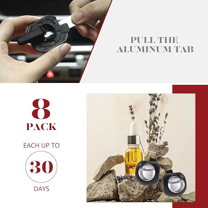 - Simple to Use: Clips easily onto car vents and stay firmly in place; allows you to select the level of freshness intensity; set of 8, each up to 30 days, total up to 240 days steady fragrance experience