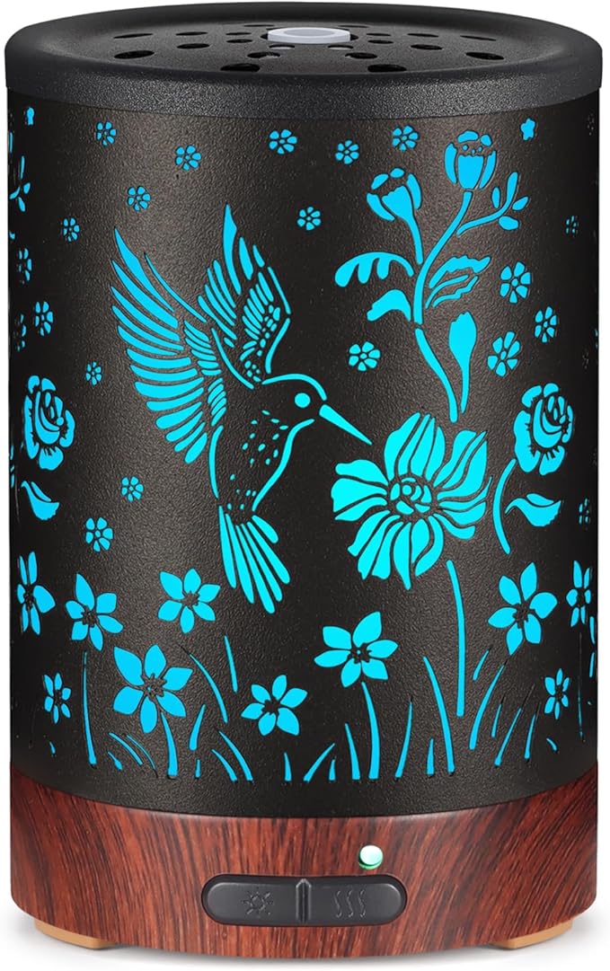 Essential Oil Diffuser- Metal Cool Mist Humidifier-Aromatherapy Diffuser with7 Colors Light, and Auto-Off - for Home and Office(Hummingbird)……