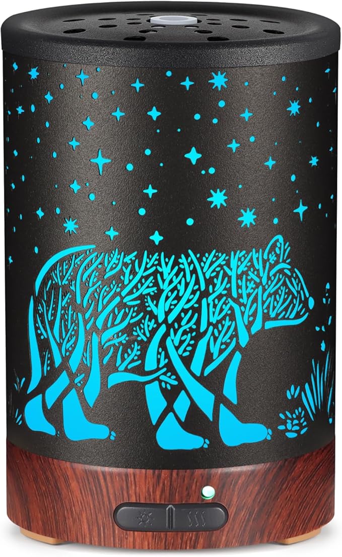 Essential Oil Diffuser- Aromatherapy Diffuser with7 Colors Light, and Auto-Off -Metal Cool Mist Humidifier for Home and Office(Polar Bear)…