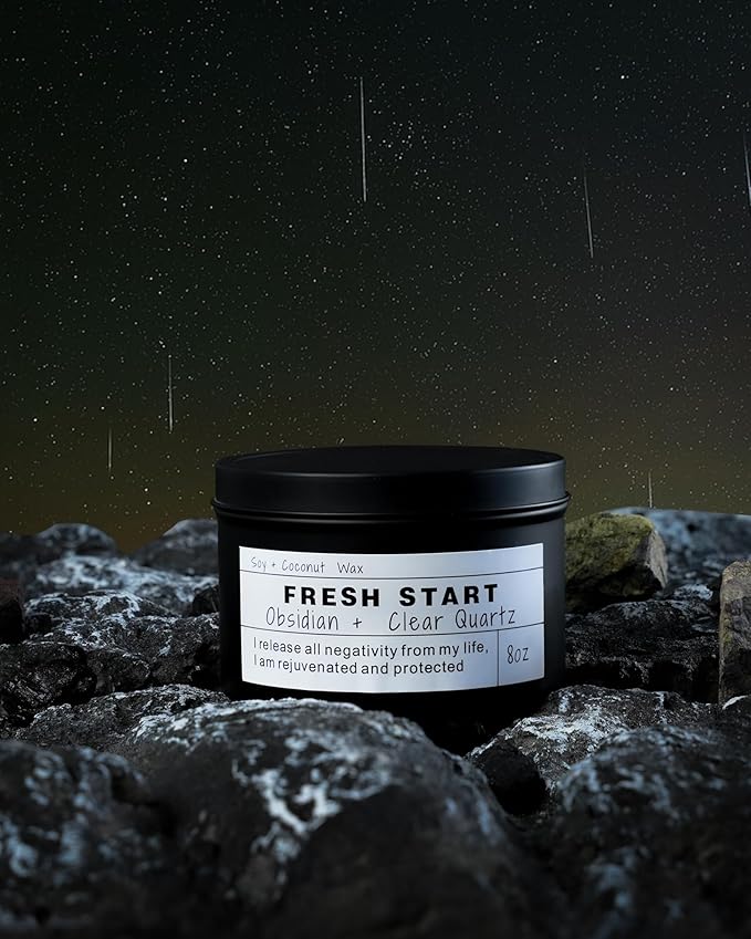 - š Light the FRESH START Candle to release those negative feelings and eliminate emotional resentment. Obsidian and Clear Quartz are powerful energies that channel, purify, attract and amplify healing energies, clear your mind, and absorb, store, release and regulate energy. Obsidian is said to eliminate fear, shock and depression. Suggested meditations and mantras are provided with the candle.
