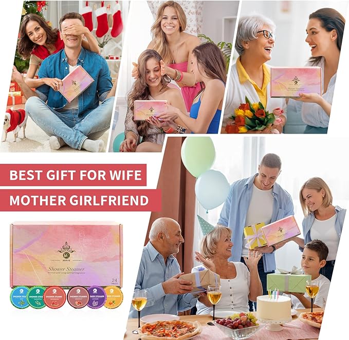 Shower Steamers Aromatherapy, 24-Pack Shower Bombs Birthday Gifts for Women, Christmas Gifts with Eucalyptus Mint Lavender Watermelon Grapefruit Tangerine Essential Oils
