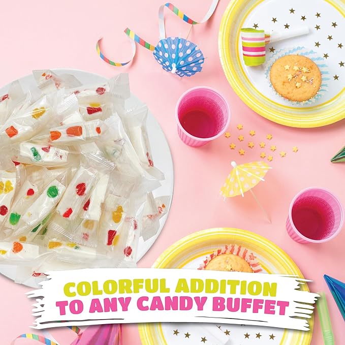 - Enjoy the delightful mix of soft, chewy nougat and vibrant, fruity jelly bits in every bite