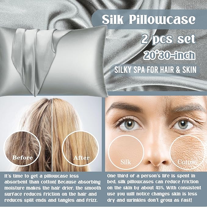 - There's one special item in the gift basket: a pair of silk pillowcases! A solution to her waking up in the morning with dry skin and tangled hair, every woman needs it! it relieves dry skin and hair, and the silky touch reduces friction on the skin and hair, which slows down the growth of wrinkles and reduces split ends