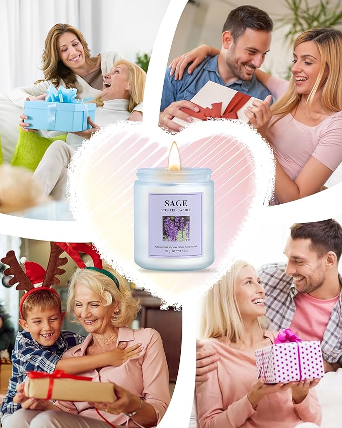 - 【Aroma Candle Features】:4 pack Sage scented aromatherapy candles. Each candle has a capacity of 7.7 ounces(3.5 inches long x 2.8 inches high).It will burn for about 50 hours, 4 candles will burn for about 200-220 hours.The product does not produce an unpleasant odor and is harmless to the human body. It will give you good atmosphere in any occasion.