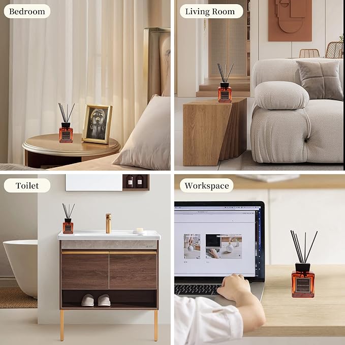 - LONG-LASTING USE:The more diffusion sticks you put in, the stronger the fragrance. The fragrance spreads as the stick absorbs the essential oils. If the fragrance is not strong enough, you can replace the stick and continue to use it, or turning the original stick upside down