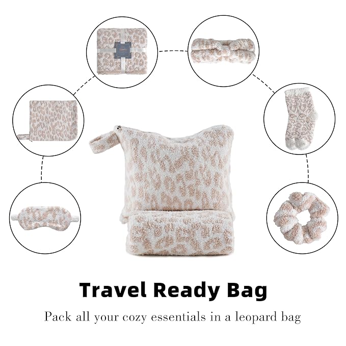 - Travel Ready Gift Basket: Comes with a convenient cheetah storage bag, making it easy to take your comfort essentials on the go, whether for a weekend getaway or a longer trip. Special gift box set for women who is going for a trip.