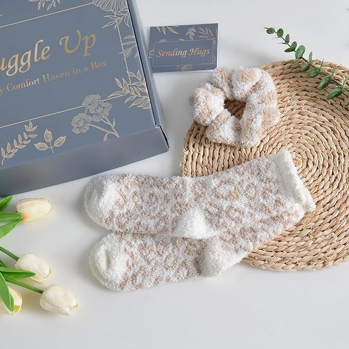 - Perfect Friendship Gifts for Women: Leopard spa makeup headband for washing face use. And fuzzy hair scrunchie for women, gils. Thoughtfully curated and beautifully packaged, this gift basket is ideal as birthday gifts, holidays gifts, Christmas gifts for women sister mom, or any occasion to show someone special you care.