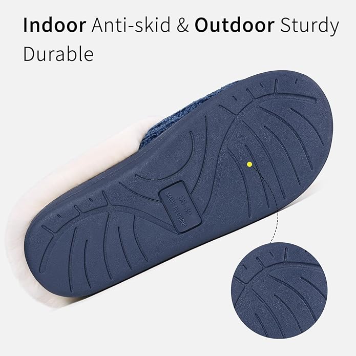 • Classic Winter Knit Slippers: Featuring a breathable chenille knit uppers design, along with high-quality and comfort fluffy faux fur collar trim, lined with thickening fleece, the house slippers wrap your feet very well, keep your feet nice and toasty whether in socks or bare feet.