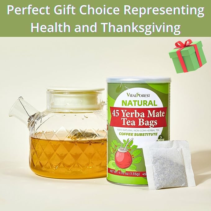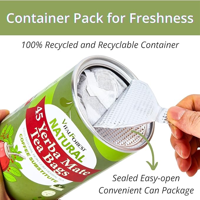 45 Yerba Mate Tea Bags, VitalForest Unsmoked Yerba Mate Argentina, Energy Burst Yerba Tea
