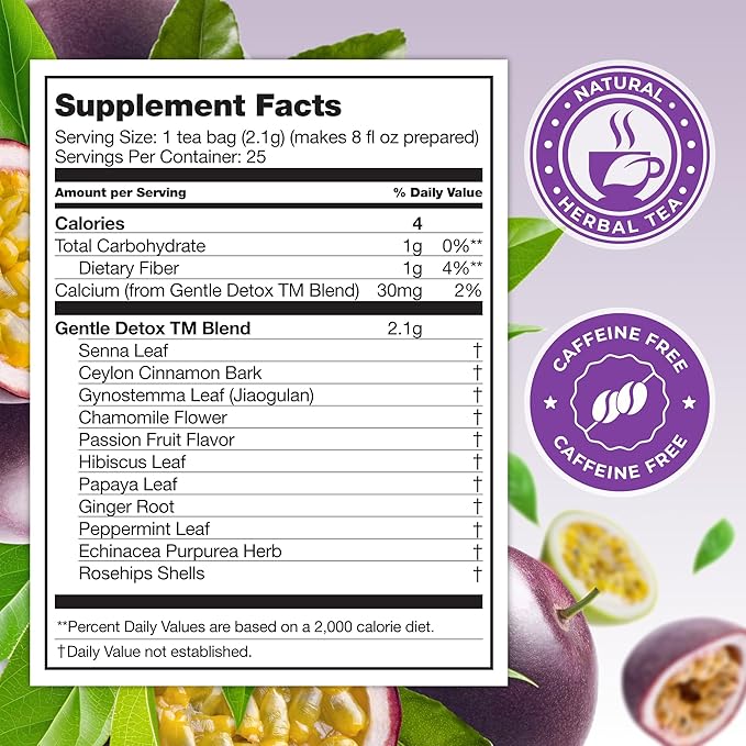 Total Tea SIimming Detox Tea Caffeine Free - 25 Day Detox - Herbal Tea with Chamomile, Hibiscus Tea & Ginger Root for Colon Cleanse – Natural Passion Fruit Herbal Tea