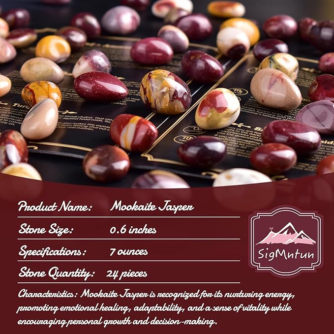 Mookaite Jasper Healing Crystal Stone Set - 24 Pieces, 0.6" Natural & Polished Stones for Healing, Meditation, Reiki, Chakra, Crafting & Decoration