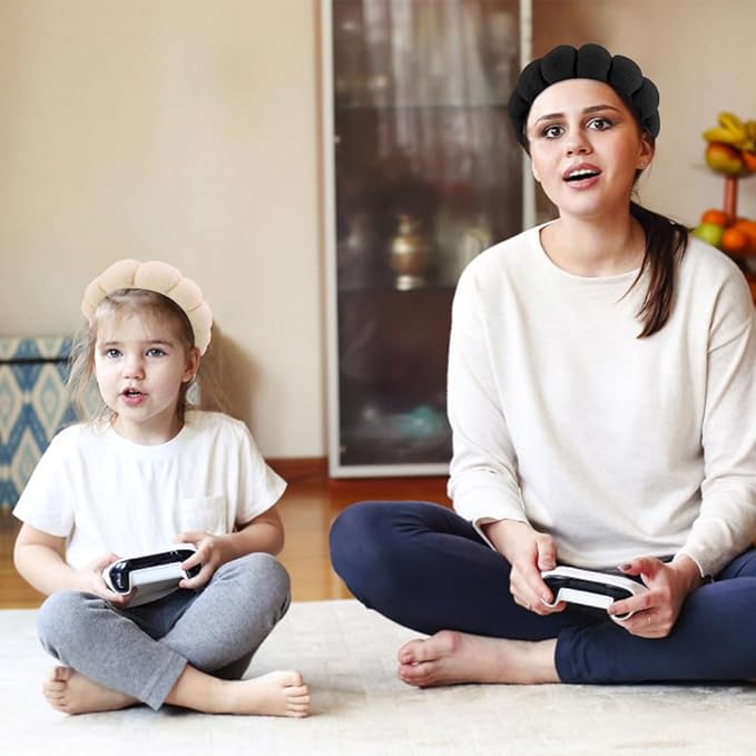 AOPRIE SPA Headbands for Washing Face Makeup Headbands with Bow Hair Band Women Facial Head Band Wrist Towel Wraps For Shower Face Mask Black White Beige, 3 Pack