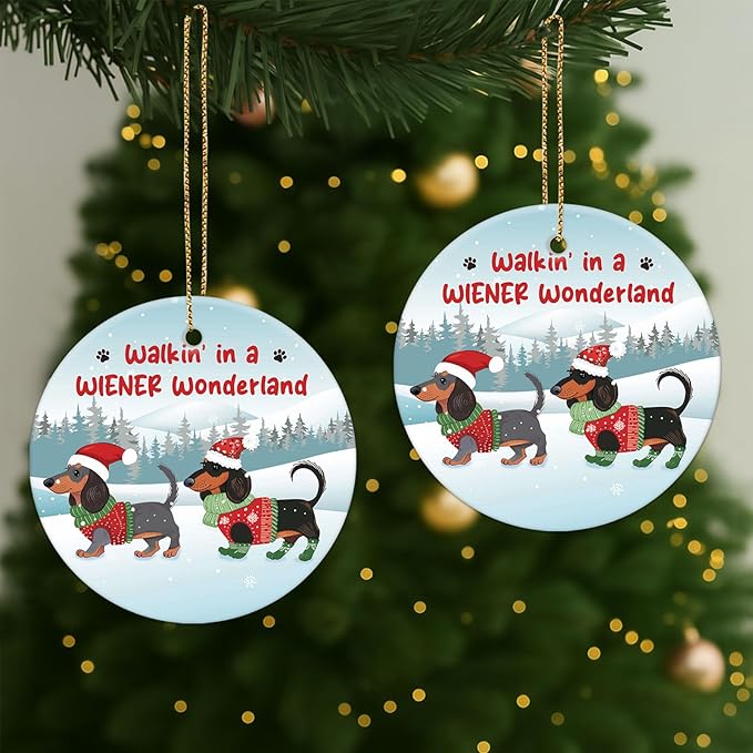 34HD Gifts for Christmas, Santa Dachshund Christmas Ornament Ceramic 2-Side Printed, Dachshund for Men Women, Christmas Hanging Decorations