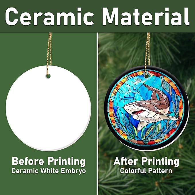 34HD Gifts for Christmas, 2.9"" Ceramic Hanging Ornament for Christmas Tree, Lightweight Both Sides Printed Flat Ornament, Christmas Decoration, Shark
