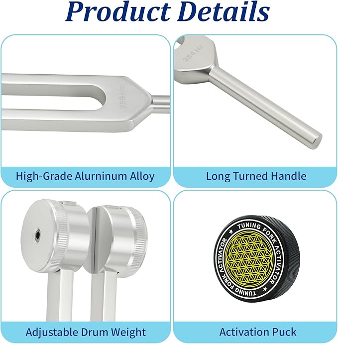 - 【Premium Quality Material】:Crafted from high-grade aluminum, these tuning forks ensure clear sound and perfect frequency.Corrosion-resistant, lightweight, and durable, they offer stable sound effects suitable for various therapeutic and meditative scenarios.