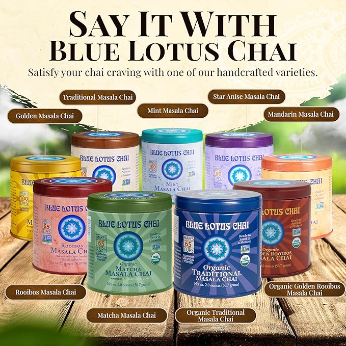 - The delightful and authentic taste of Blue Lotus Chai will have you falling in love. Enjoy an authentic Indian tea without any added sweeteners, milk powders or other additives. Don't settle for mediocre chai - have GREAT chai.