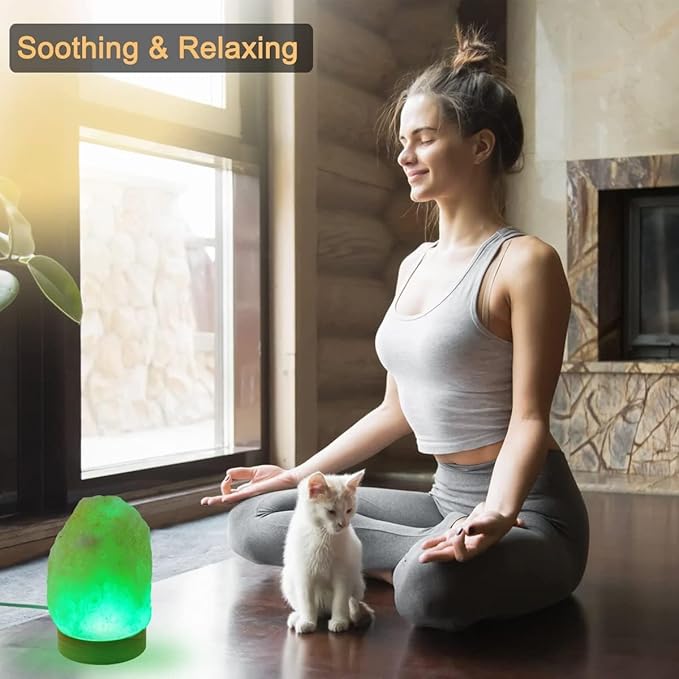 - HEALTH BENEFITS: Natural salt rock light emits negative ions when heated by the bulb. It is Fit Right Anywhere. At the center of a coffee table, bedside table, dining, living room or yoga space. The naturally ionized air helps you sleep better at night and allowing you to wake refreshed.