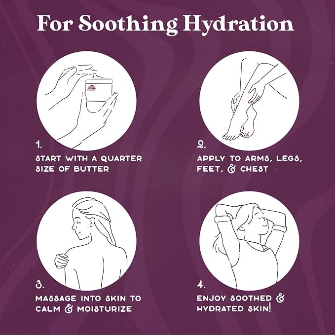 - Chamomile for Calming Care: Infused with Chamomile Flower Extract, known for its antioxidant and anti-inflammatory properties, this body butter soothes irritation, reduces redness, and hydrates the skin while combating free radicals.