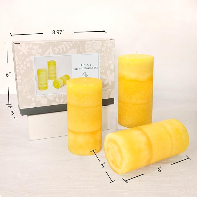 - Candle Scented for Home: Plant essential oils with lemon citrus and plant fragrances, the decorative yellow candles have premium highly refined lemon fragrances, make people feeling comfortable. It is ideal for use during the spring and summer months and can be very refreshing and uplifting