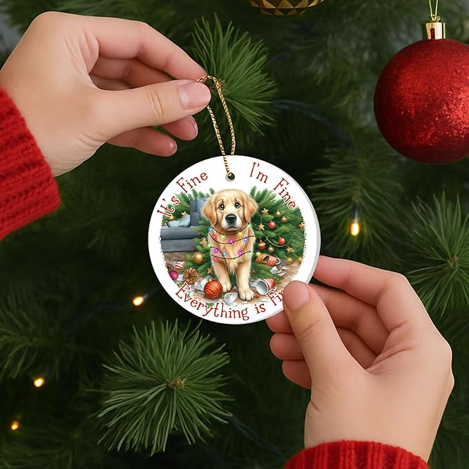 34HD 2.9"" Lightweight Ceramic Ornament for Christmas Tree, Both Sides Printed Flat Hanging Ornament, Gifts for Christmas, Christmas Decoration - Golden Retriever