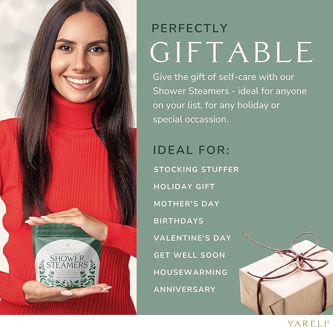 Yareli Shower Steamers for Sinus Relief, 12 Pack, for Women and Men - Aromatherapy and Self Care - Eucalyptus Mint