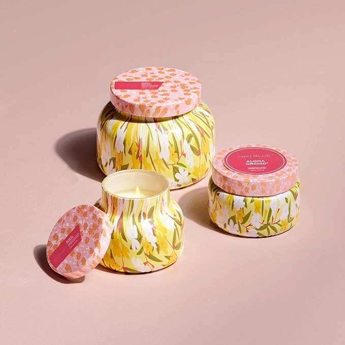 - Pattern Play Jar Candles (8.5 oz) - Bring playful vibes and a burst of fragrance wherever you go! Our Aloha Orchid Pattern Play Printed Travel Tin is as portable as it is pretty, delivering a bouquet of fragrance to brighten any moment, anywhere. Burn Time: Up to 40 hours.