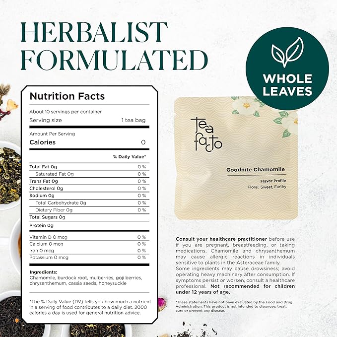 Tea Facto Goodnite* Chamomile Tea Bags with Chrysanthemum Tea for Soothing Comfort - 10 Pack