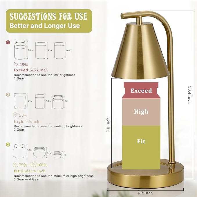 - 【Gold Home Decor with Pet-friendly】Continuous scenting with candle warming lamp,you no longer have to worry that your home will be too stinky from your pet dog. Hong-in candle warmers come with non-slip pads on the bottom and do not produce a flame when in use, so you don't have to worry about burning your cat's tail!