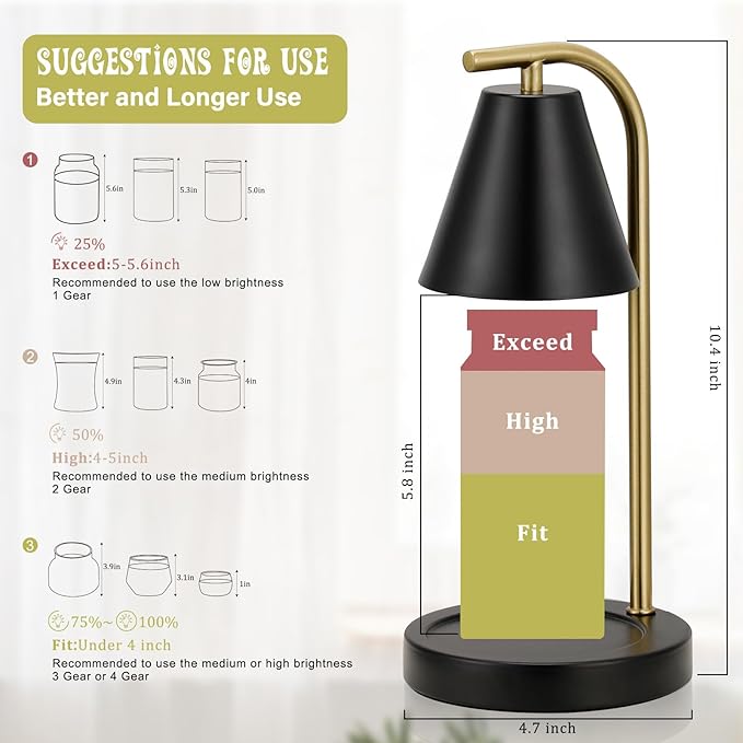 - 【Dimmable Candle Lamps for Different Candles】Due to the thermal conductivity of the metal, the lampshade will continue to generate heat while helping the candle to burn fully.For longer life and a better atmosphere, we recommend high brightness for small candles and low brightness for large candles.