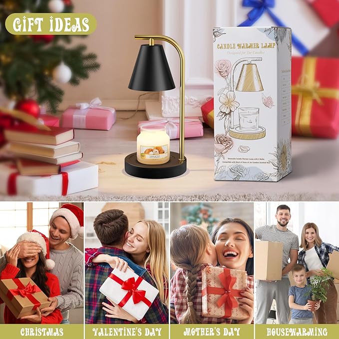 Black and Gold Candle Warmer, Candle Warmer Lamp with Timer,Electric Candle Lamp Warmer for Scented Wax with 2 Bulbs,House Warming Gifts New Home&Gifts for Women, Candle Lamp for Jar Candles